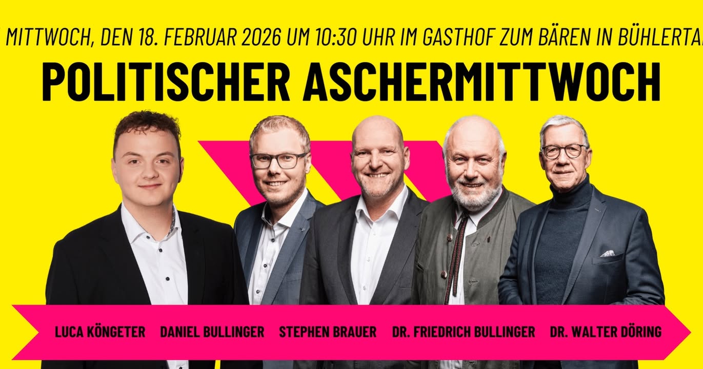 Auch in diesem Jahr findet wieder unser traditionelle Politische Aschermittwoch statt. Hierzu laden wir recht herzlich ein! Dieser findet statt am: Mittwoch, den 18. Februar 2026 um 10:30 Uhr (Gasthof zum Bären, Hauptstraße 14, 74424 Bühlertann) Nach der Begrüßung durch Daniel Bullinger zu den aktuellen kreispolitischen Themen erwartet Sie eine Gesprächsrunde unserer ehemaligen Landtagsabgeordneten Dr. Walter Döring, Dr. Friedrich Bullinger und Stephen Brauer. Im Anschluss wird unser Landtagskandidat @lucakoengeter mit einer Wahlkampfrede die aktuellen politischen Herausforderungen und meinen liberalen Perspektiven für Baden-Württemberg in den Mittelpunkt stellen. Den Abschluss bildet ein geselliges Beisammensein bei Weißwürsten und Fischbrötchen. Getränke auf Selbstzahlerbasis. Zu dieser Veranstaltung sind auch Nicht-Mitglieder sowie Interessierte herzlich eingeladen. Wir freuen uns auf Ihr Kommen, auf spannende politische Impulse und den persönlichen Austausch.